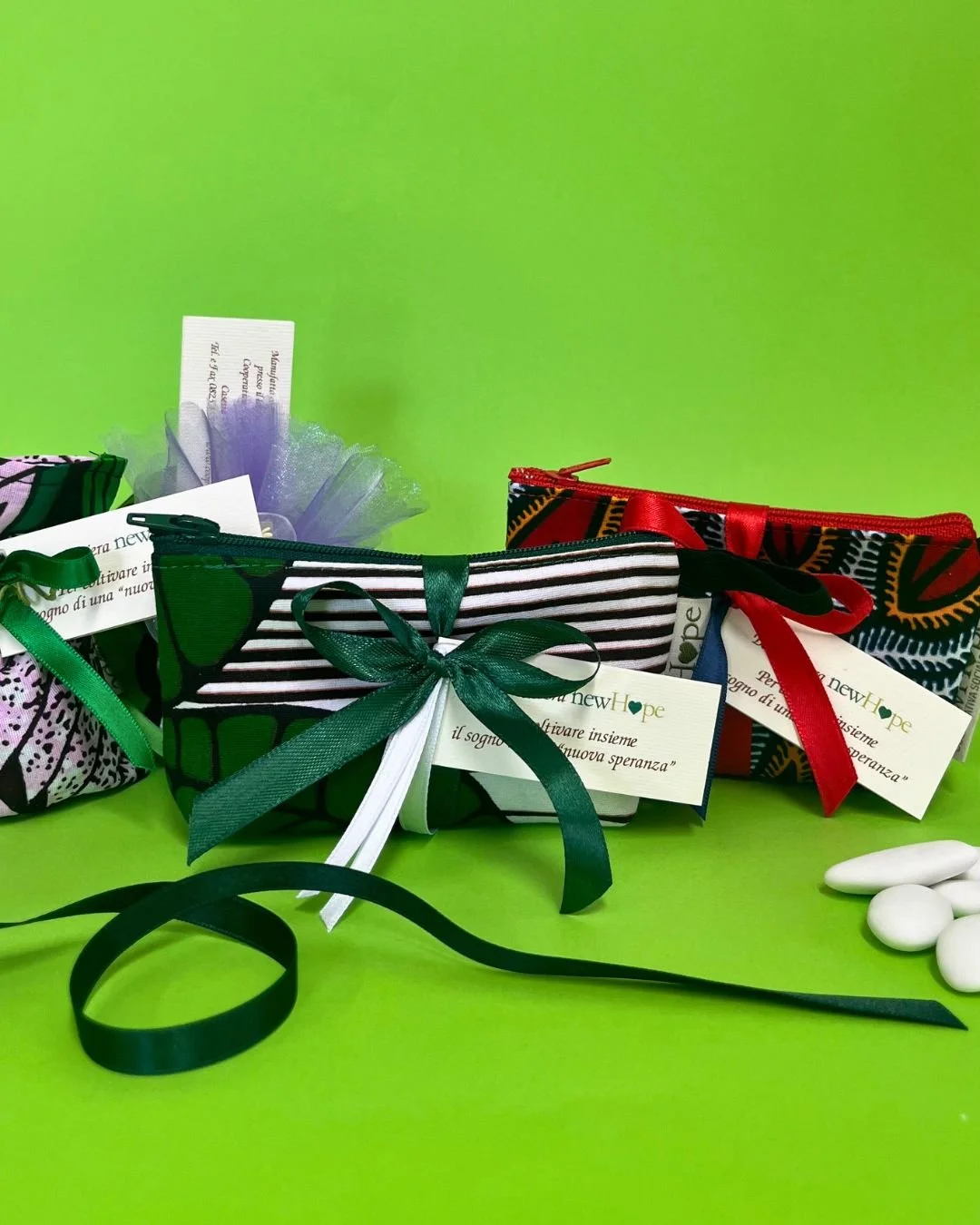 Nei momenti importanti della vita di ciascuno: matrimonio, battesimo, prima comunione, cresima, laurea, compleanni e anniversari, gli originali manufatti NewHope possono diventare delle significative e utili bomboniere solidali.